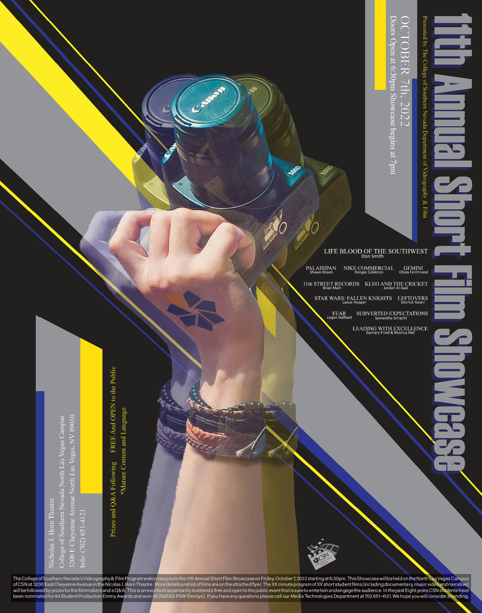 Designed for The College of Southern Nevada’s Department of Videography & Film for the 11th Annual Short Film Showcase. The challenge was capturing the very essence of filmmaking and intuitive stories. Thus, the poster takes the inspiration based on the hero’s journey which is a common staple in film throughout the decades.