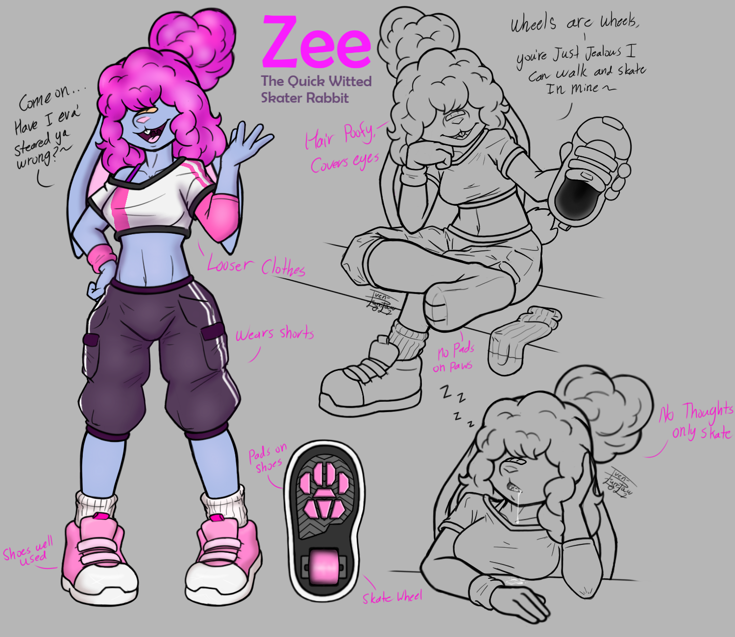 Dotty's Best friend who moved to Louisiana from New York. A freeloader she often crashes at either Dotty's house or her boyfriend Trevor's apartment. She’s a no-rules street skater who finds herself near the coast. Not one to stray too far from the urban environment, Zee often can be found doing up various blank walls with murals of spray paint art. More so rough around the edges she's always getting into trouble that Dotty is often helping her out of.