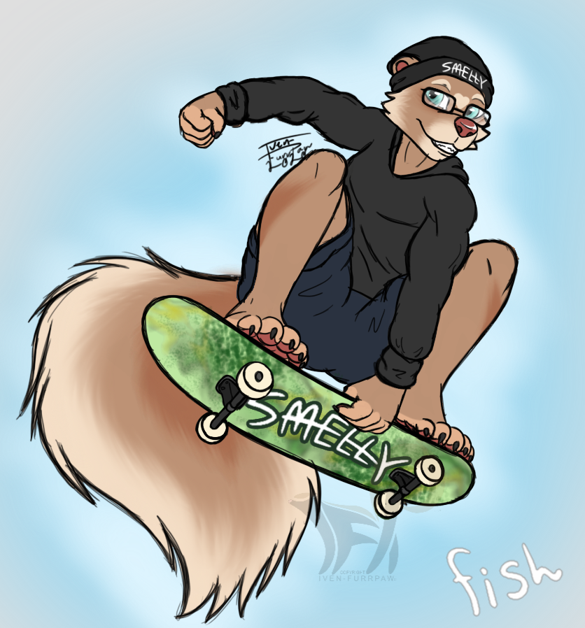 Being a more tomboyish and punk like style, Kori is a skater who often finds themself in trouble with those who think a someone like them can't ride a board. Not to mention with a skunk's less desirable reputation and non-binary gender, they are often discriminated against. Not to mention having to live with their uncle and their cousin Charlie. Now living with other fellow skunks, Kori still finds ways to get into trouble but often has fun while doing it.
