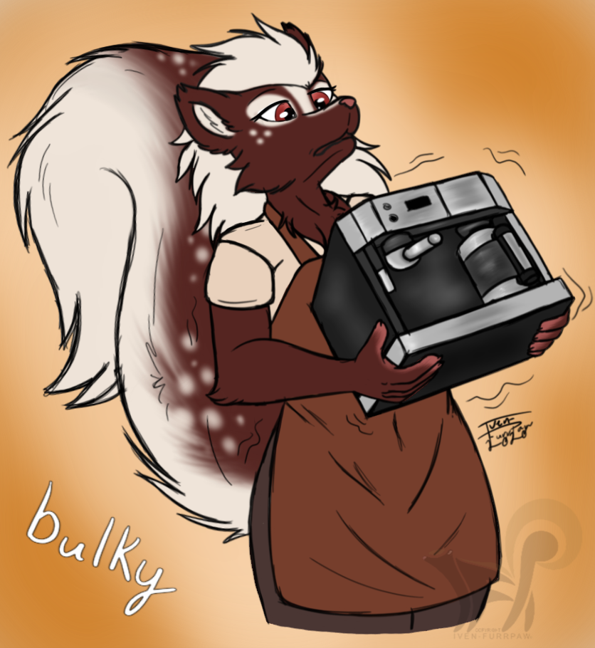 A sweet farm girl who grew up in the country with her 3 other siblings. With dreams of becoming a country singer in the big city, she was unfortunately turned away for her "generic" talent. Poppy now works as a barista at a coffee shop to help pay for a small, rundown apartment. She often visits night clubs to cheer herself up. One such trip introduced her to Victoria; whom she fell in love with. Eventually moving in with Victoria, the two of them started the Skunk Sanctuary for her fellow kin down on their luck.